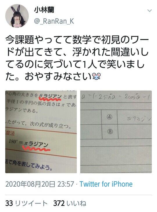 誰かの勉強の投稿でラジアンがどうのこうのというのがあったけど