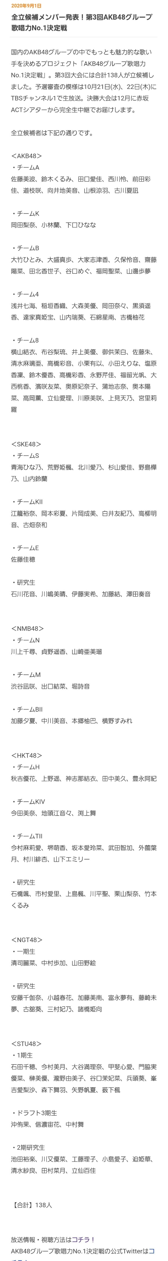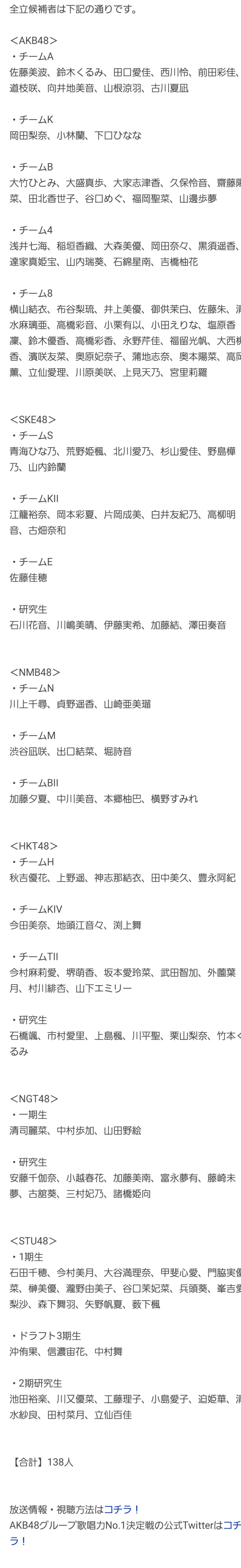 【速報】「AKB48グループ歌唱力No.1決定戦」追加立候補メンバーキター