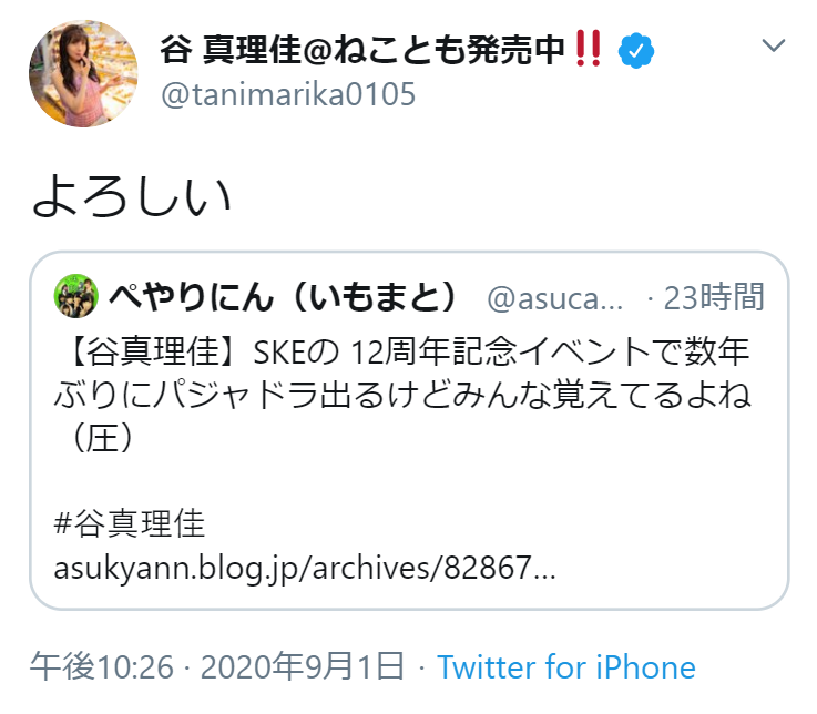 — 谷 真理佳@ねことも発売中‼️ (@tanimarika0105) September 1, 2020