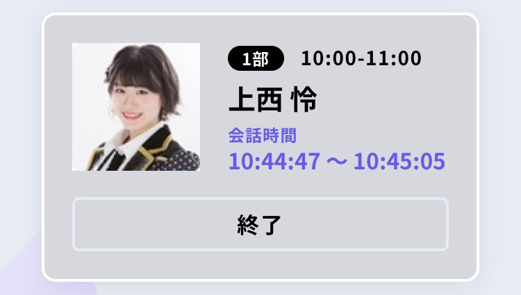 「オンラインお話し会」1回分の実施時間につきましては、従来の個別握手会の方式をもとに、オンライン開催の面を考慮したお時間での実施を予定しております。
