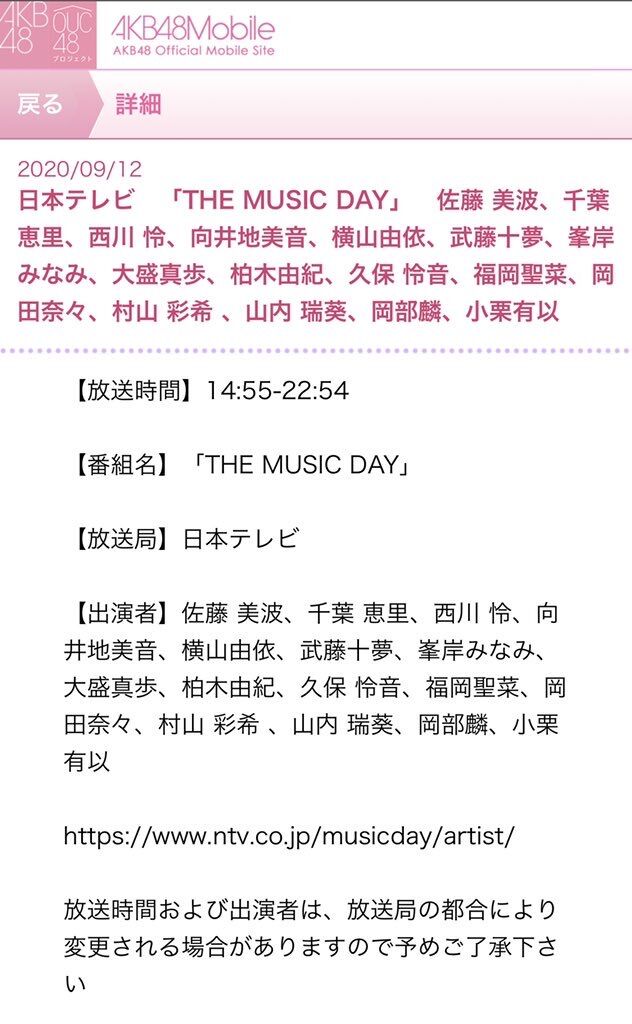 本日14時55分から生放送の #THEMUSICDAY にAKB48として出演させて頂きます🧸💖