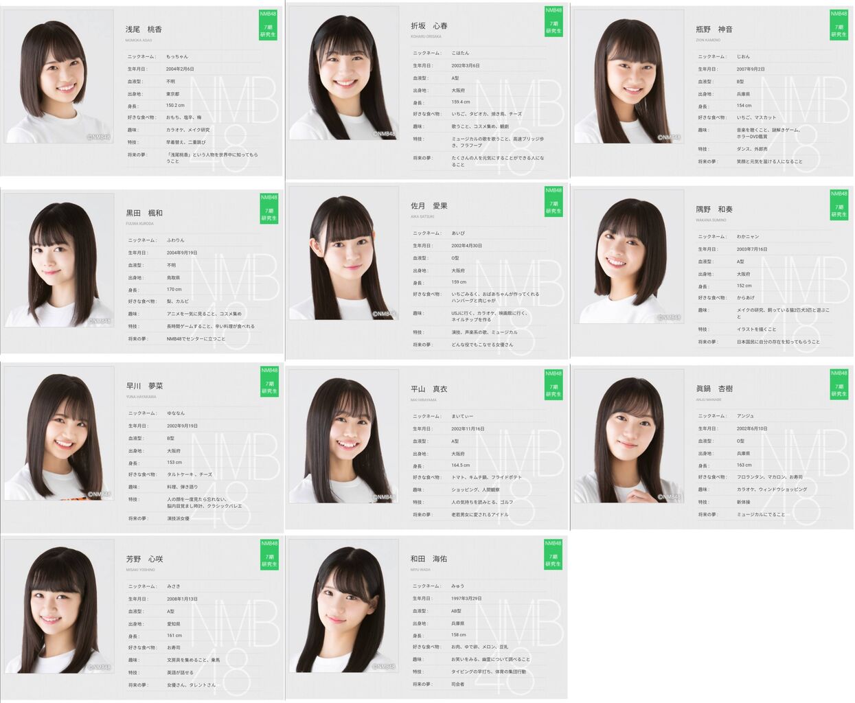 磯山さやかと10回、大和田南那と7回、寺本莉緒と5回、沢口愛華と3回、大原優乃と1回