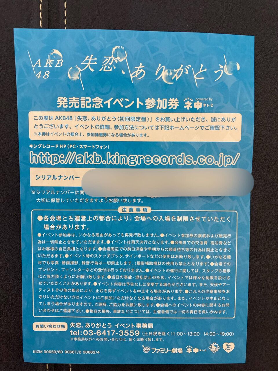 ※本イベントではエントリー期間内に対象の参加券に記載のシリアルナンバーを専用フォームにて入力していただきます。エントリー方法に関してこちら(http://akb.kingrecords.co.jp/post-2.html)