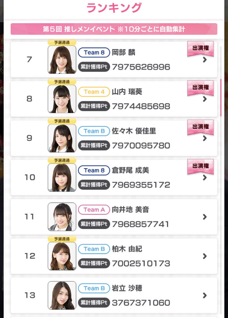 10位 倉野尾成美 ←知らねえ