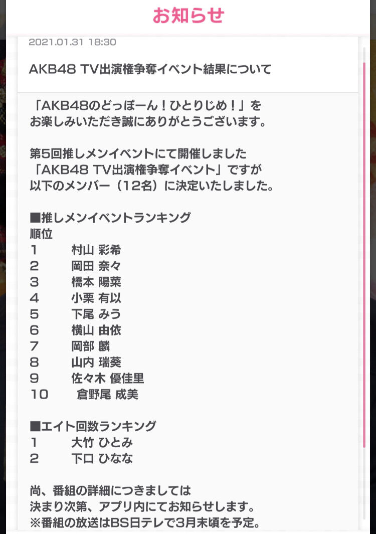 はるぴょん選抜メンバーに入ってるw
