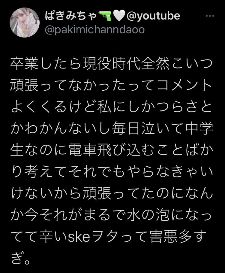 誰だか知らんけどSKEヲタじゃなくても卒業してからこう言う発言する地雷は嫌でしょ。アケカスのワイでも嫌だもんこういう奴。