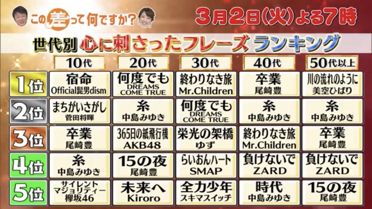中島みゆきの糸なんてここ10年くらいだろ