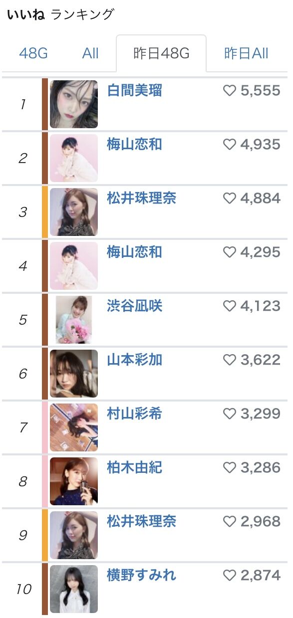 昨日のいいねランク
