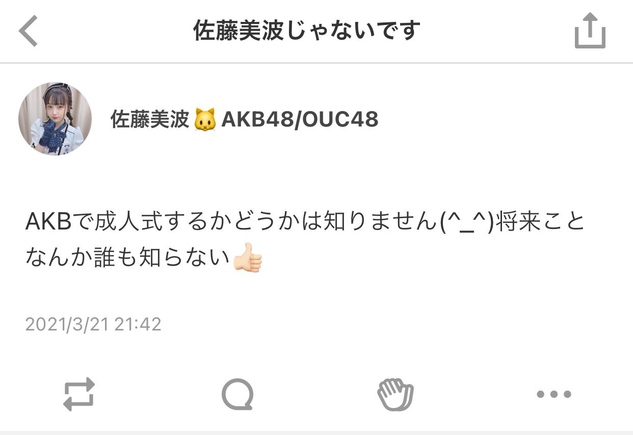 さとみな「AKBで成人式するかどうかは知りません(^_^)将来ことなんか誰も知らない👍🏻」