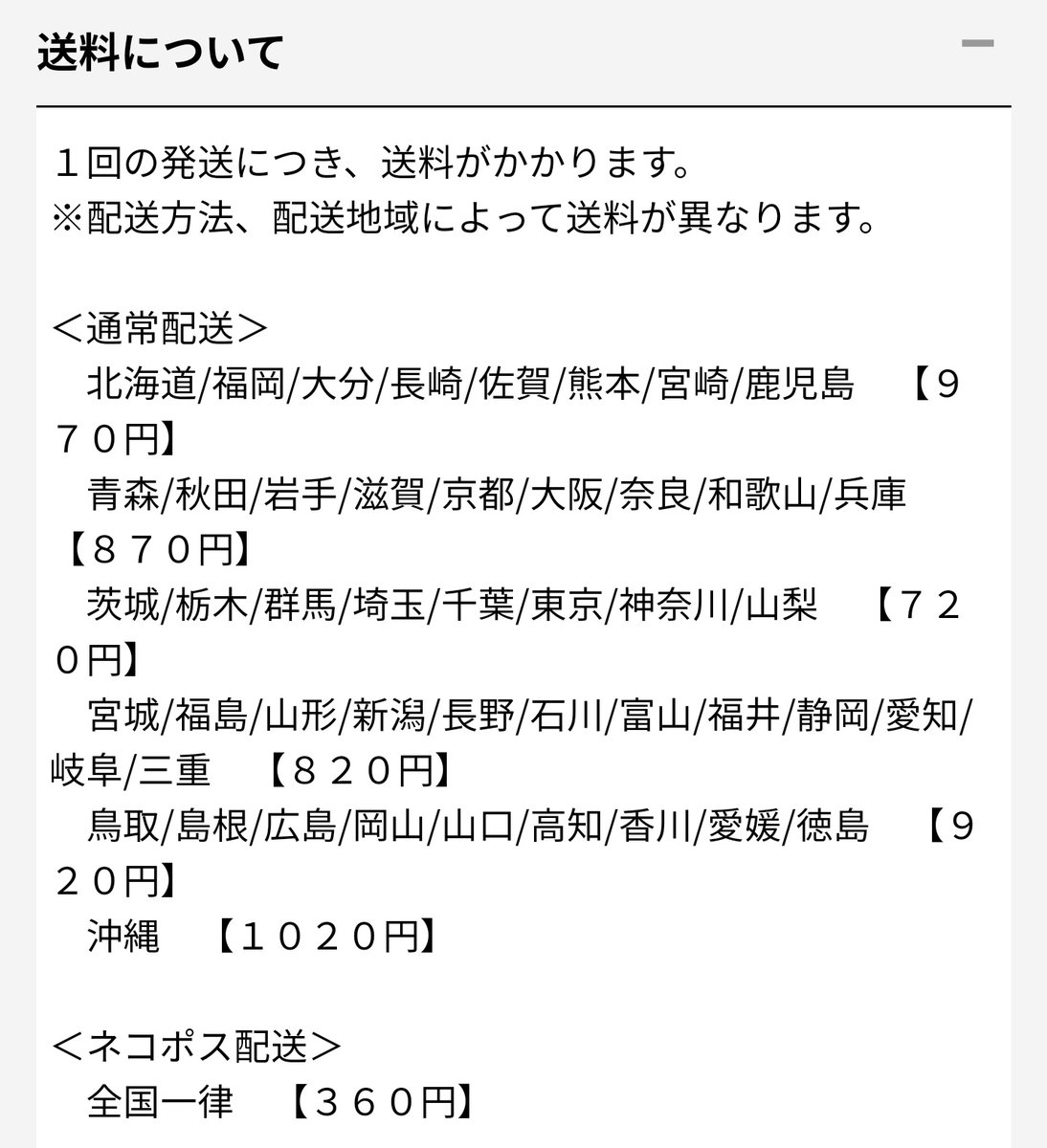 ネコポス360円 全国一律