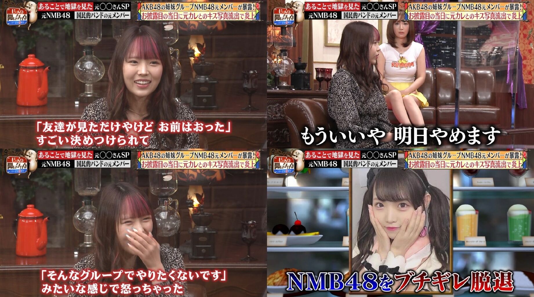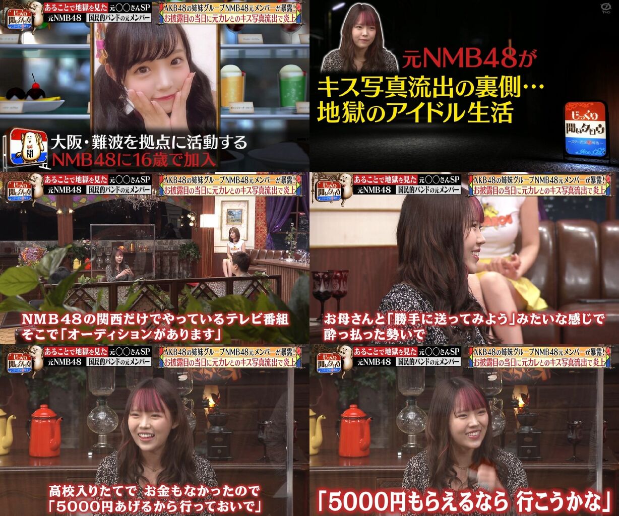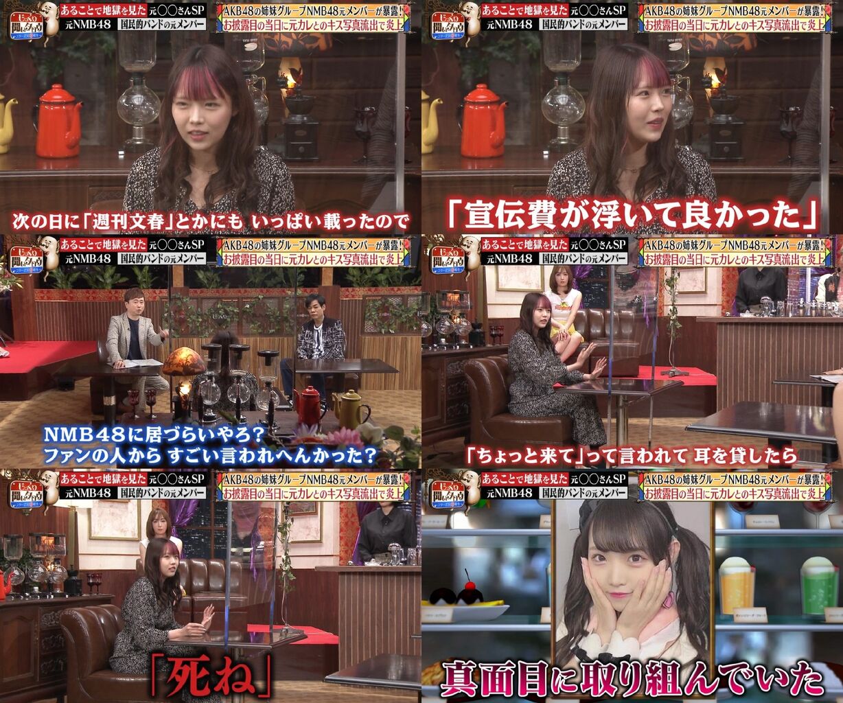 握手会では「ヨボヨボのおじいちゃんから耳元で『死ね』って」言われたことも明かし、MCの名倉潤や河本準一を驚かせた。