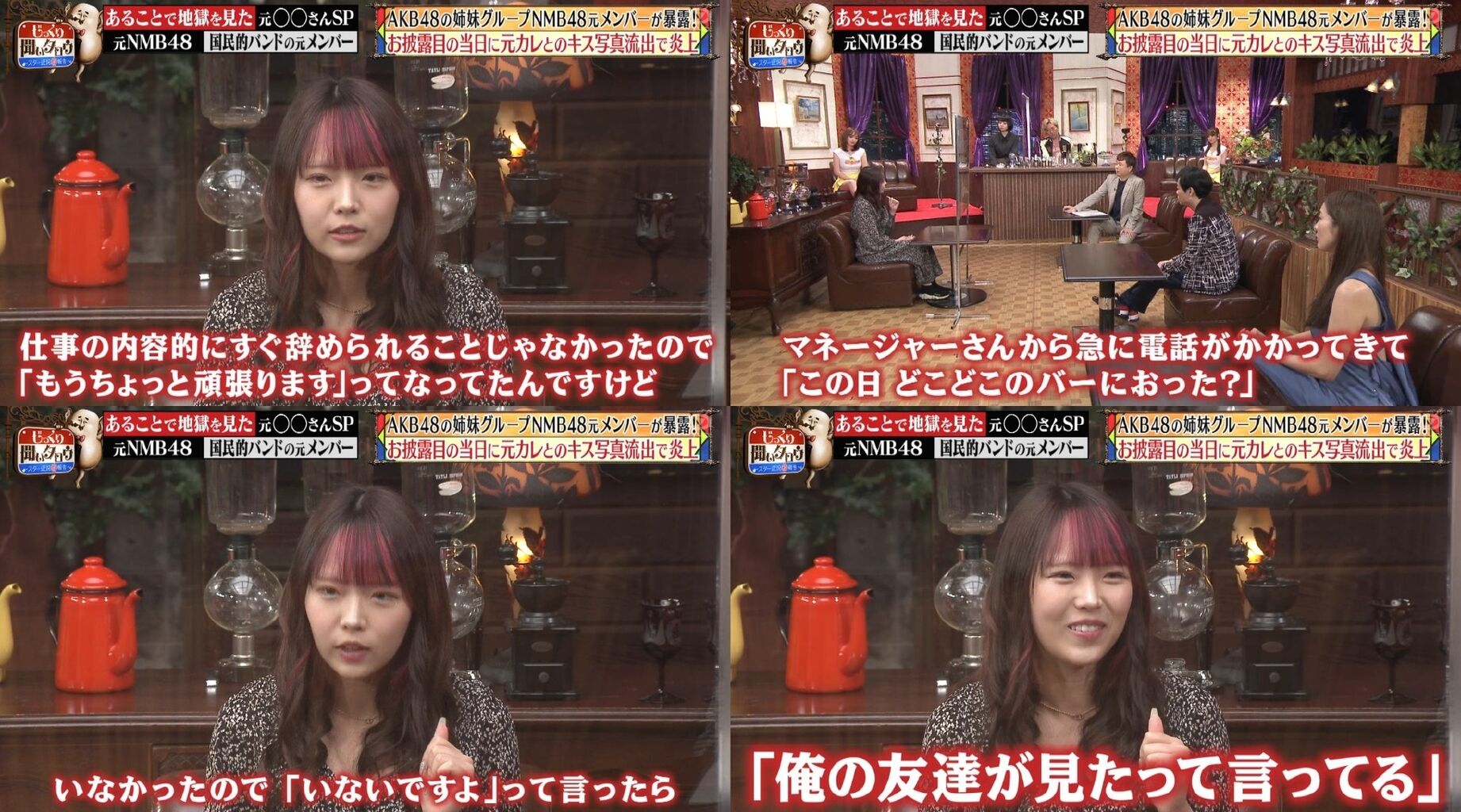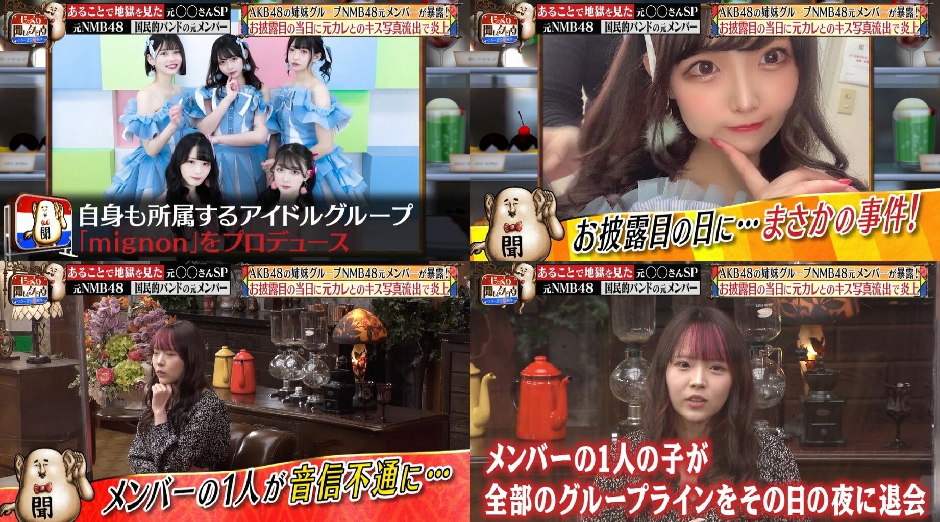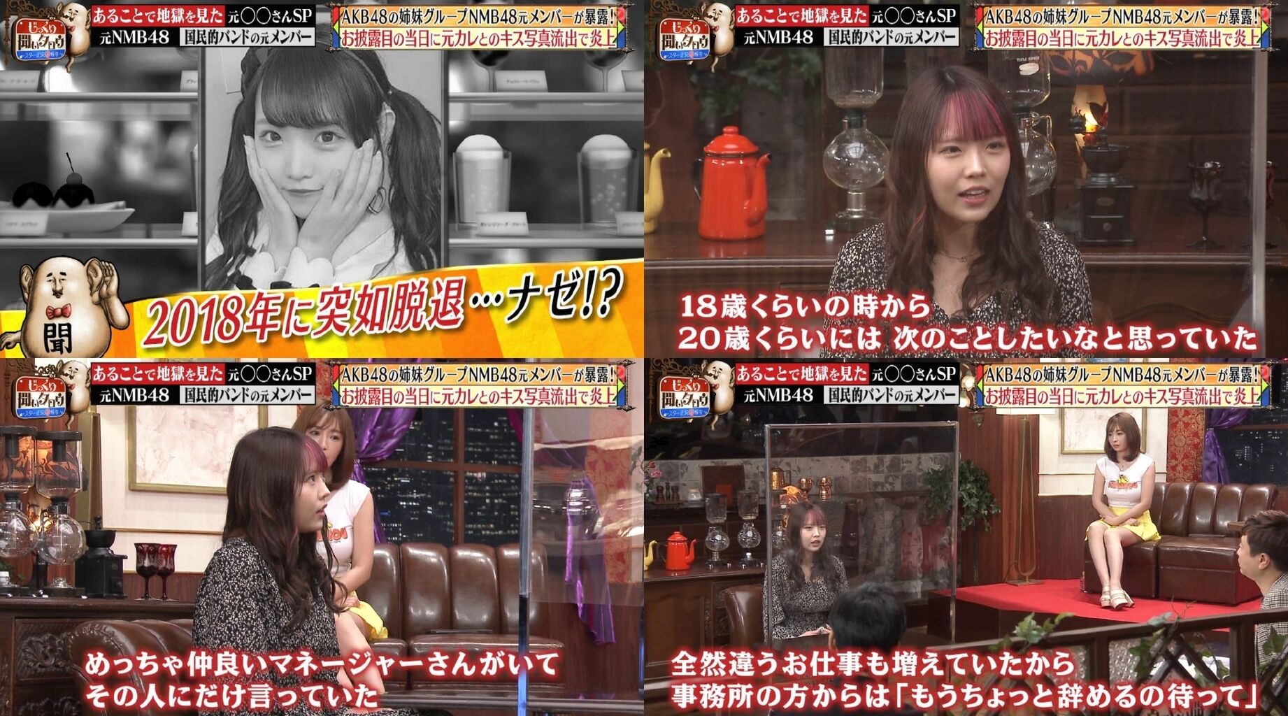 握手会では「ヨボヨボのおじいちゃんから耳元で『死ね』って」言われたことも明かし、MCの名倉潤や河本準一を驚かせた。