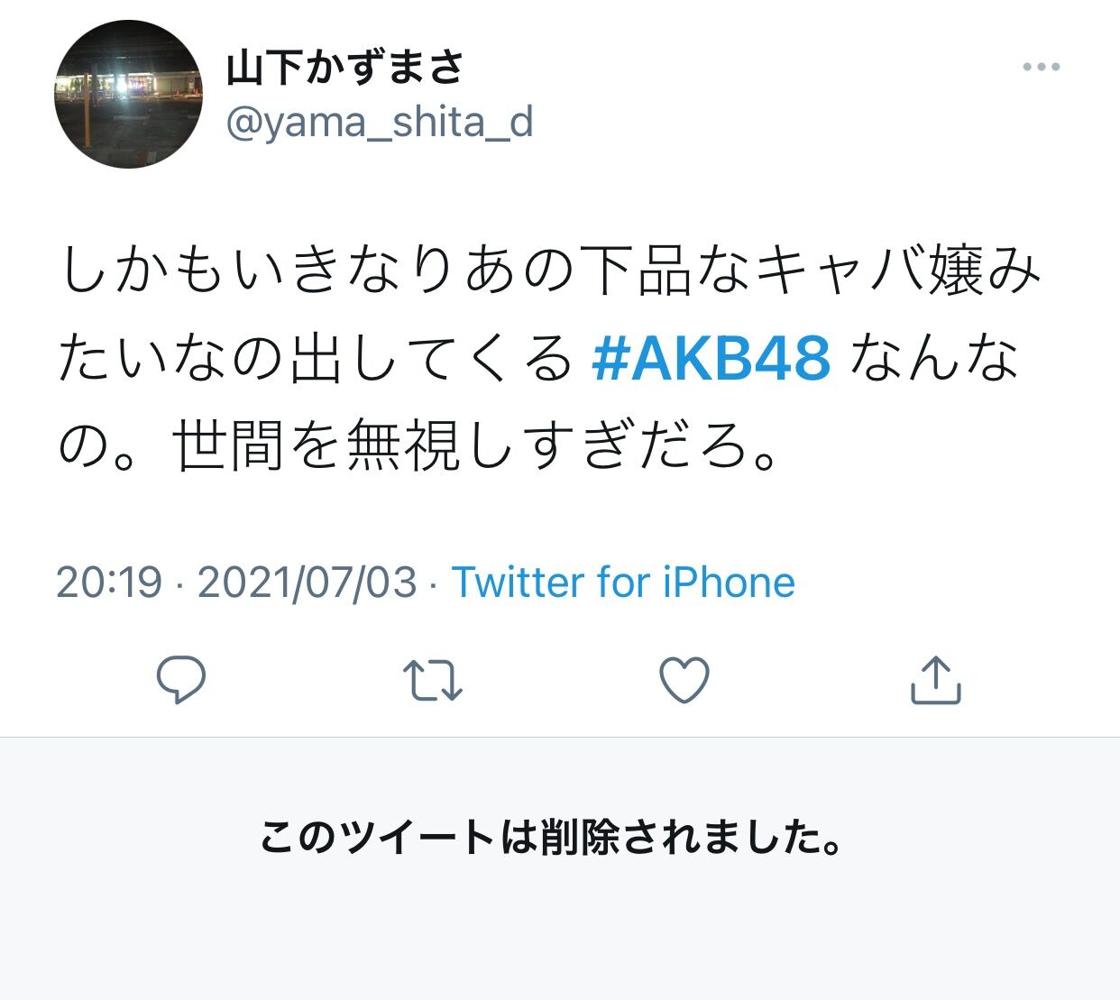 AKBだからdisっても構わないという足りない人だったんだろうね