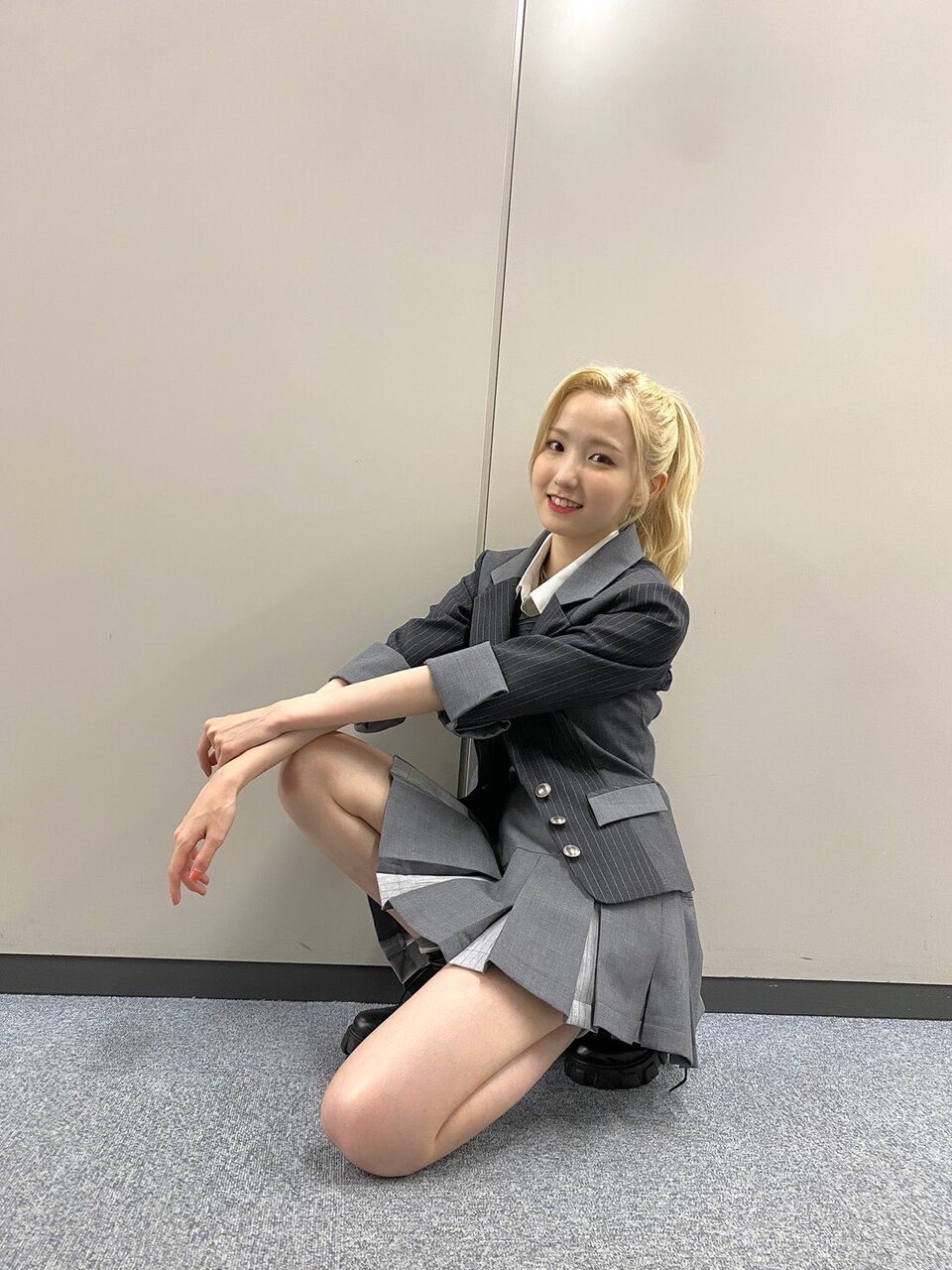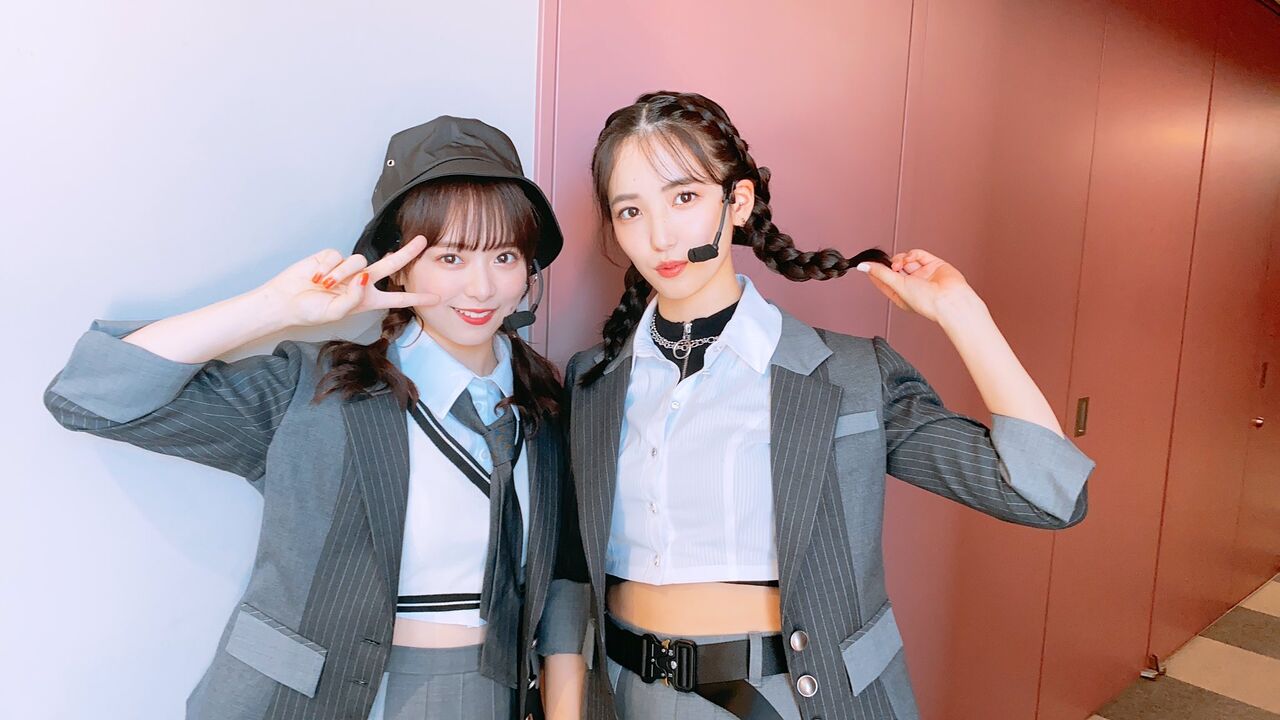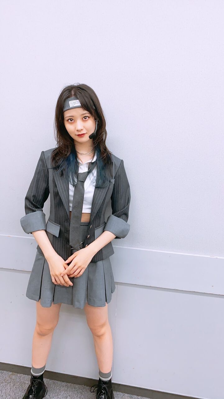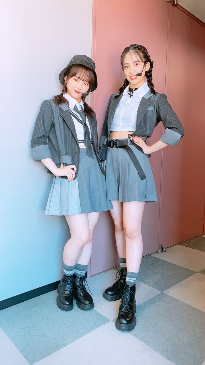 もう彼女はスタイルは抜群、 パフォーマンスも最高!更に小顔なのでハイネックにあえてシンプルにスタイリングをしてボタンをキラキラにで下尾ちゃんだけ何故かソロカットが撮れてなくて…でも、なるちゃんとのショットが可愛いから許して下さい