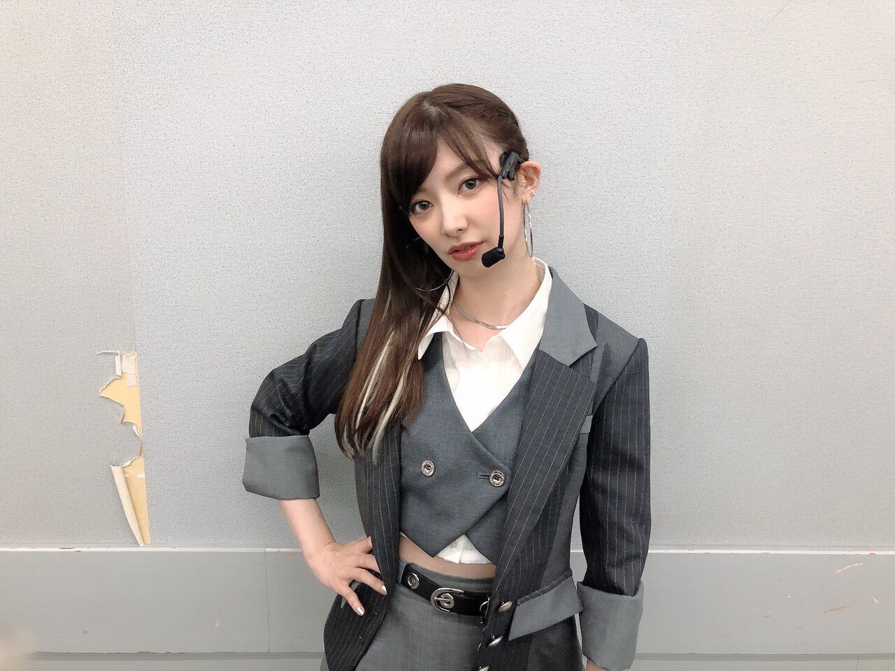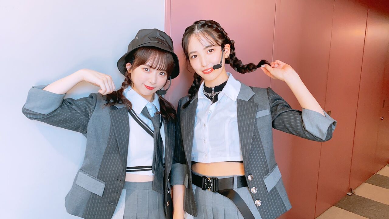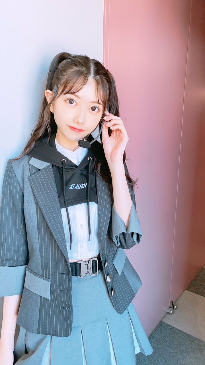 麟ちゃん(岡部麟)は見た目が一番ギャル感があるので、スケ番(言い方古い?)風でゴツメのチェーンベルトをして、踊ると細めボーダーのインナーが見え隠れするという、顔は勿論、声も可愛くて釣り師でファンを沼に落としがちな麟ちゃんならではのスタイリングです