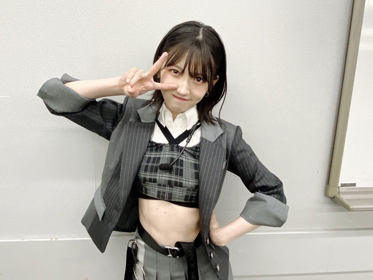 やはり腹筋美のゆいりー(村山彩希)は誰よりもお腹が見えているスタイリングで、AKB48劇場の女神といえばの彼女なので、一人だけチェックのビスチェが使われております
