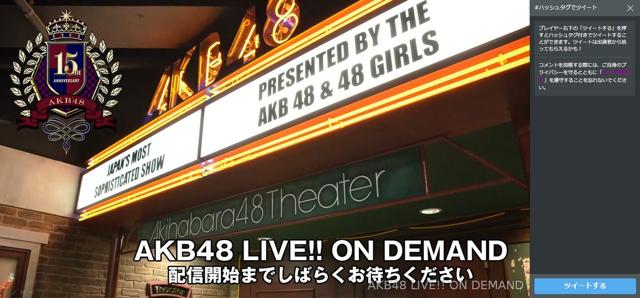 AKB48 LIVE!! ON DEMANDの生配信視聴ページに