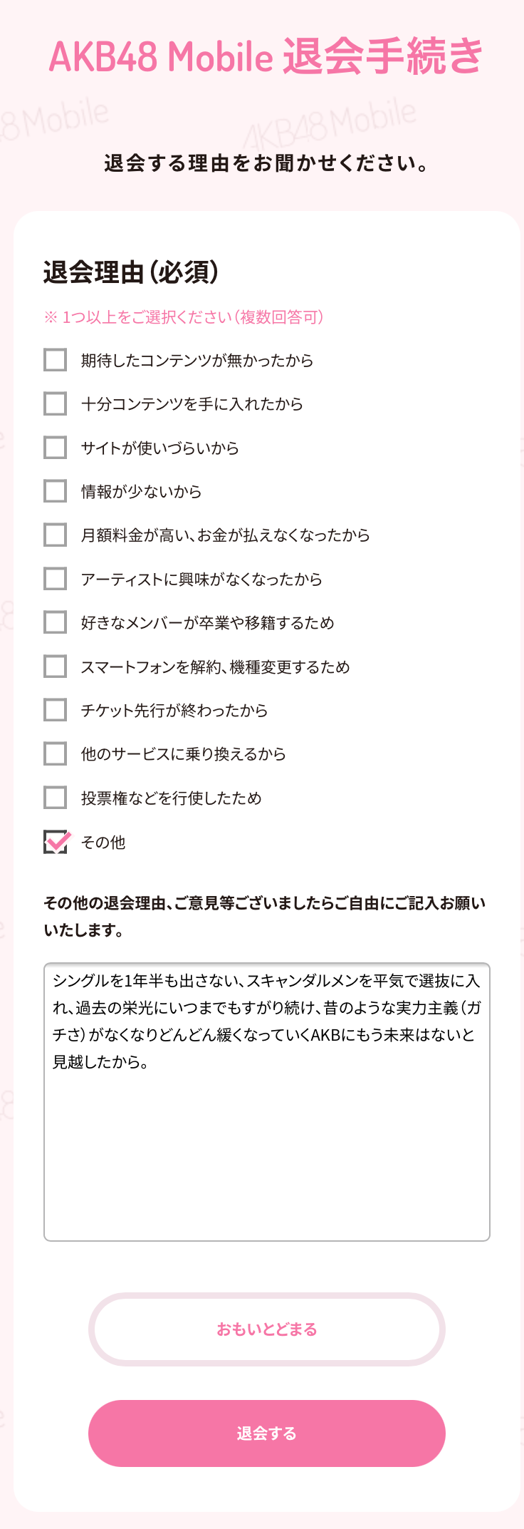 退会、ありがとう