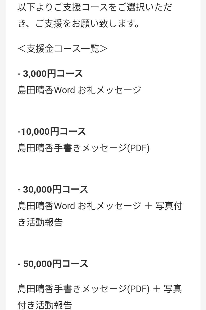 以下よりご支援コースをご選択いただき、ご支援をお願い致します。