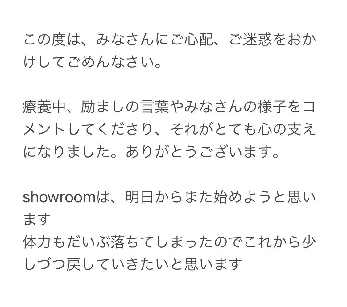 みーおんより復帰早くね?