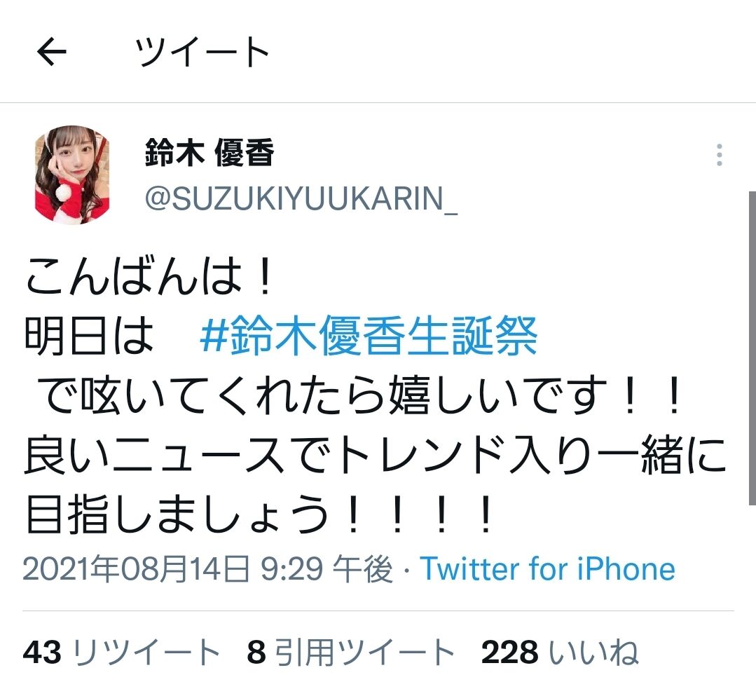 【あのさぁ…】鈴木優香「明日は #鈴木優香生誕祭 で呟いてトレンド入り目指しましょう!!」