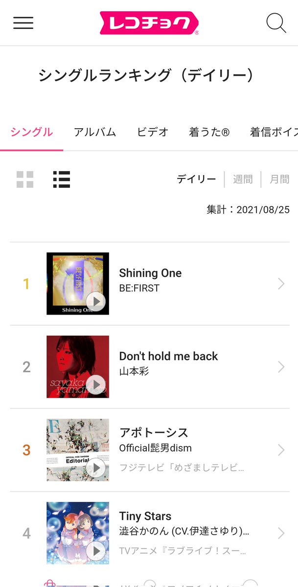 レコチョク8/25デイリー2位