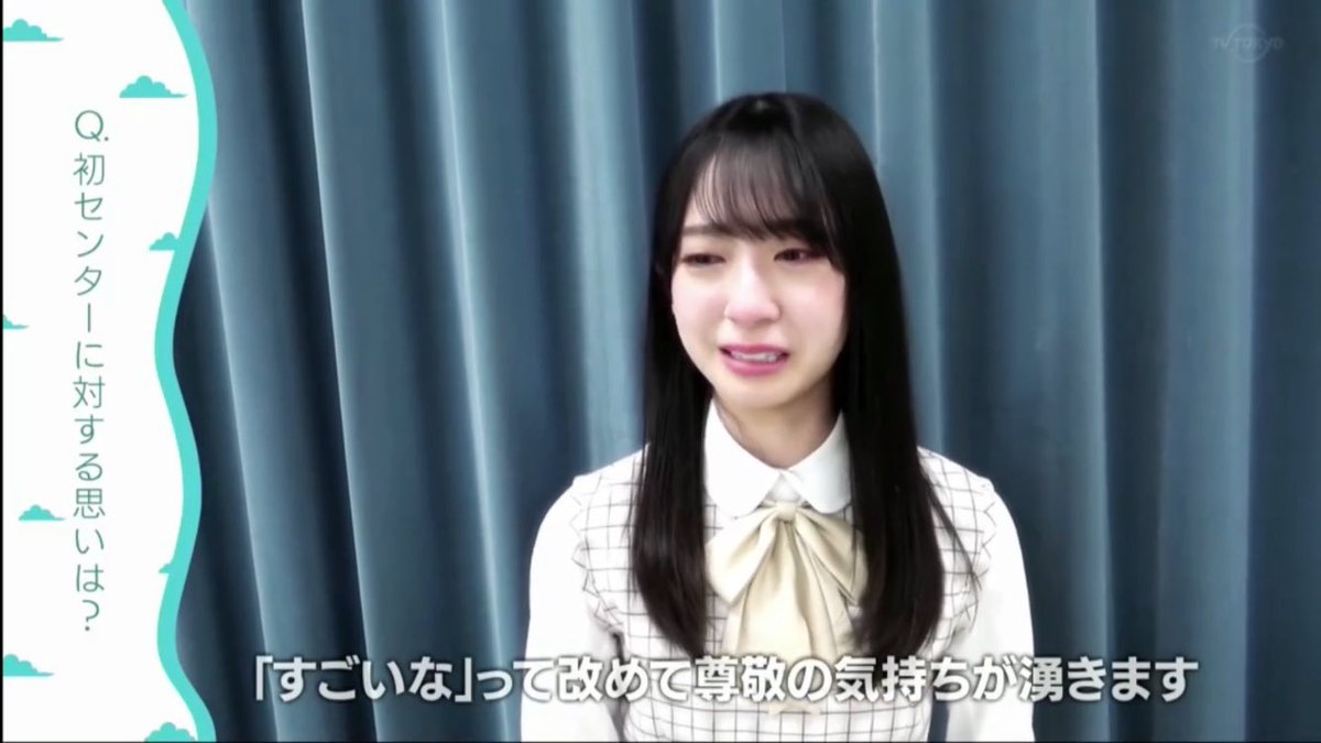 活動休止中の同期・小坂については「菜緒がいないのはすごい悲しくて、やっぱりすごく心強い人だったから。(センターを)今まで4作もやってきたと思うと、本当にすごいなって、あらためて尊敬の気持ちがわきます」と明かした。