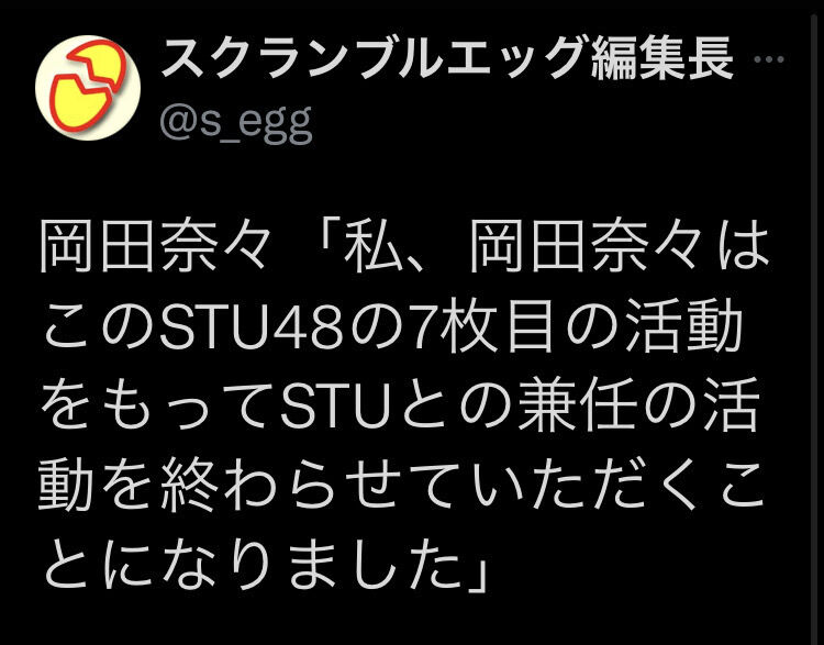 【速報】岡田奈々STU48兼任解除