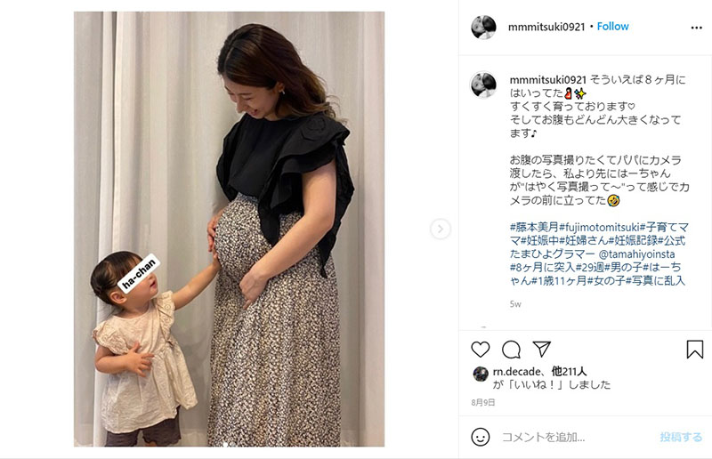 藤本さんは2011年10月にSKE第5期生のオーディションに合格し、研究生として活動。2013年4月に正規メンバーへ昇格しましたが、1カ月後の5月には保育士の夢をかなえるべくグループの活動を終了しています。2018年1月に一般男性との結婚を発表し、2019年8月には“はーちゃん”こと第1子長女を出産、2021年5月には妊娠5カ月であることを報告していました。