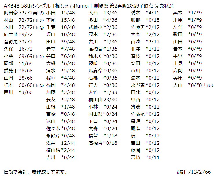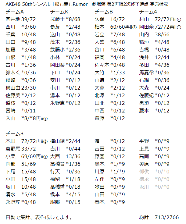 AKB48 58thシングル「根も葉もRumor」劇場盤 第2再販2次終了時点 完売状況