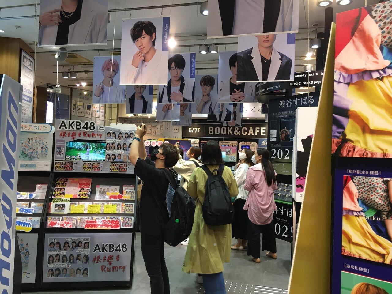 AKBのところはみんな素通り、そしてAKBのところで立ち止まって天井に吊るされたジャニーズの顔写真を撮影