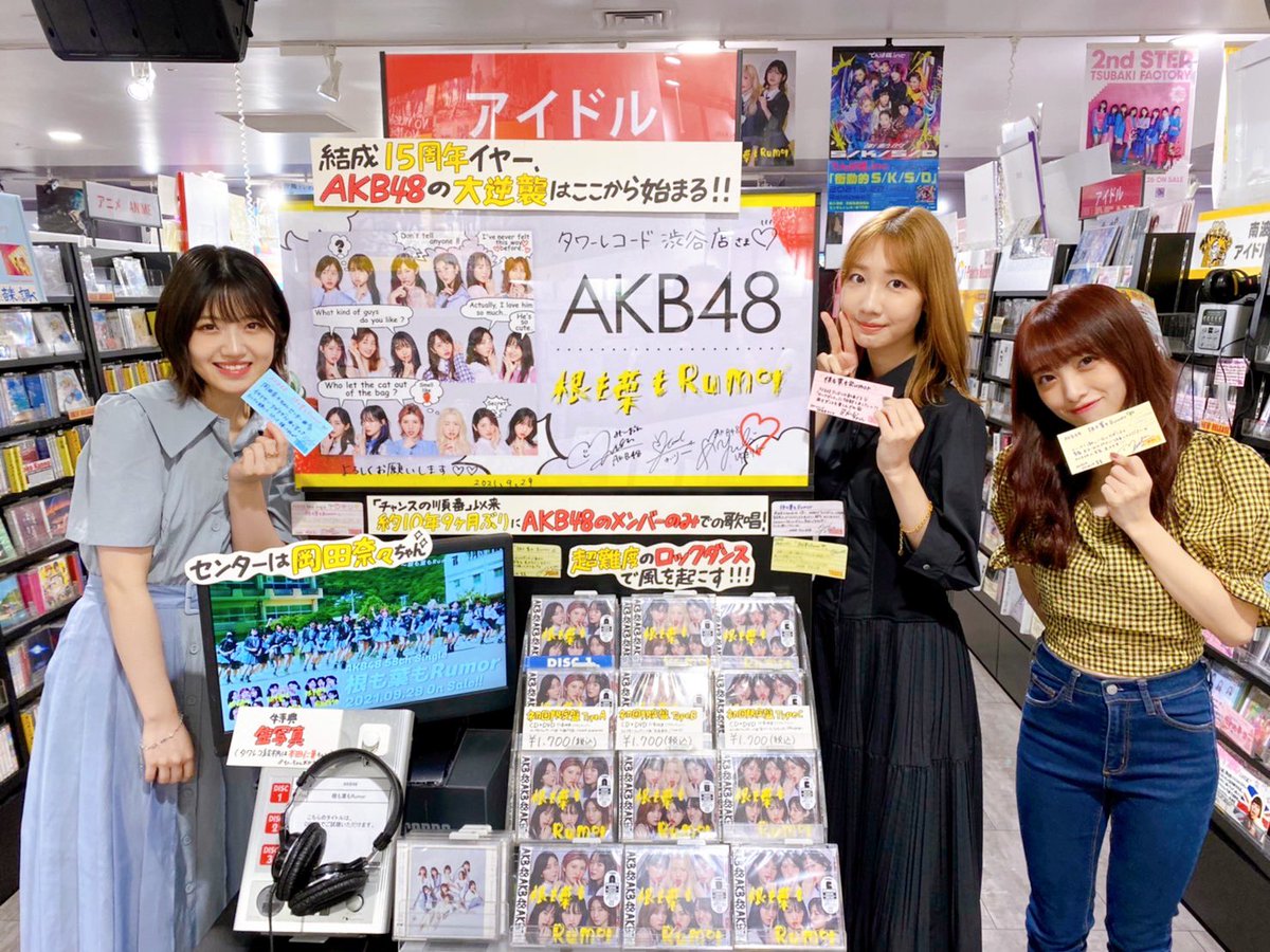 #根も葉もRumor 発売日先ほど渋谷のTSUTAYAさん/HMVさん/タワレコさんにお邪魔してきました!ちょうどCD買いに来てくれてた女の子たちに出会えたりして幸せな気持ちになった…!