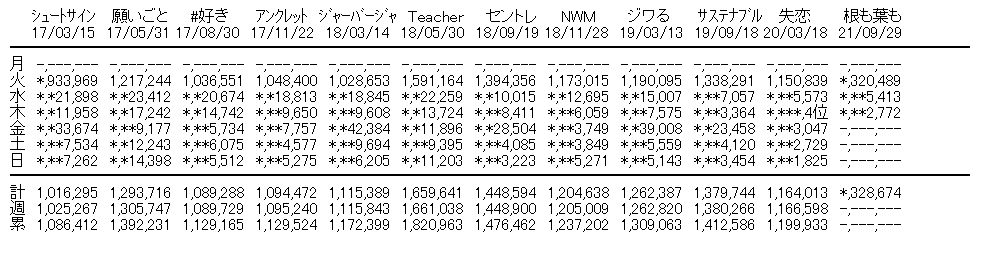 とりあえず失恋の3日目は3位が2,590だから前作超えた