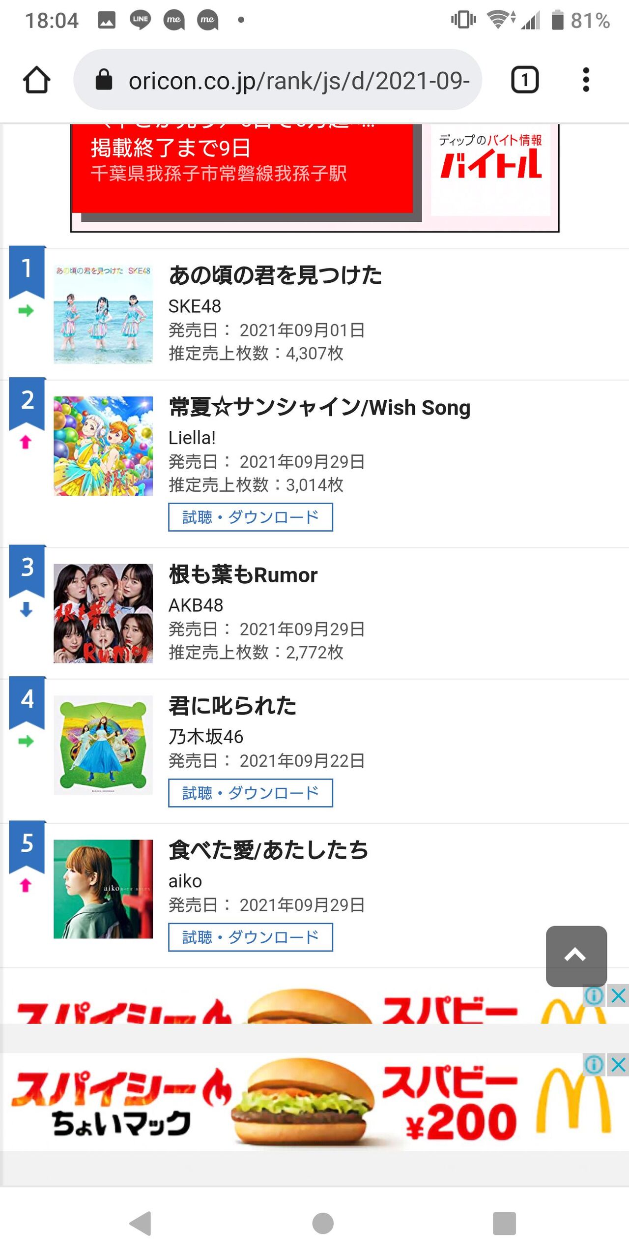 デイリー シングルランキング