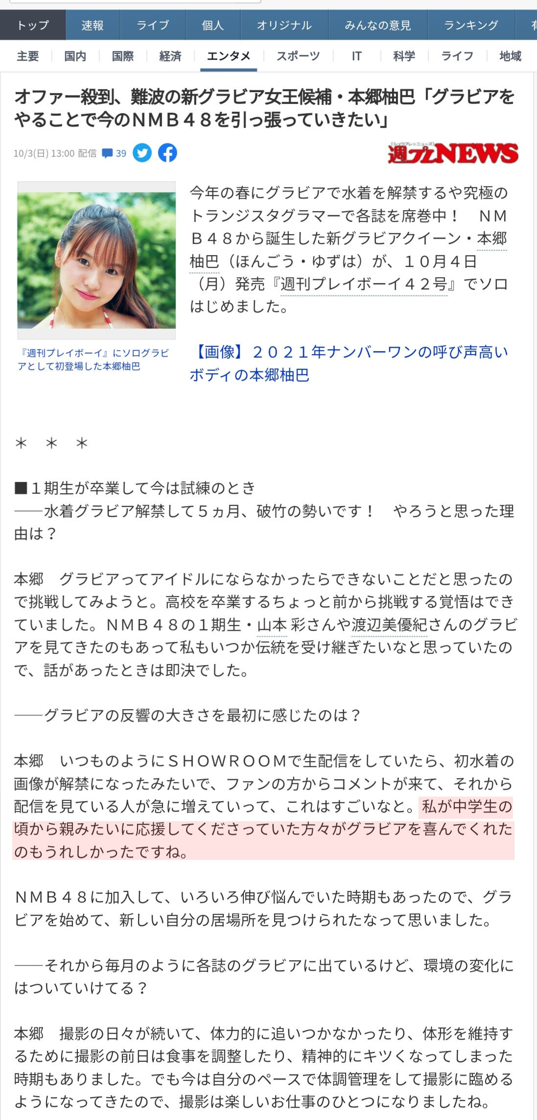 本郷柚巴「親みたいな世代の爺がグラビアで喜んでくれた」