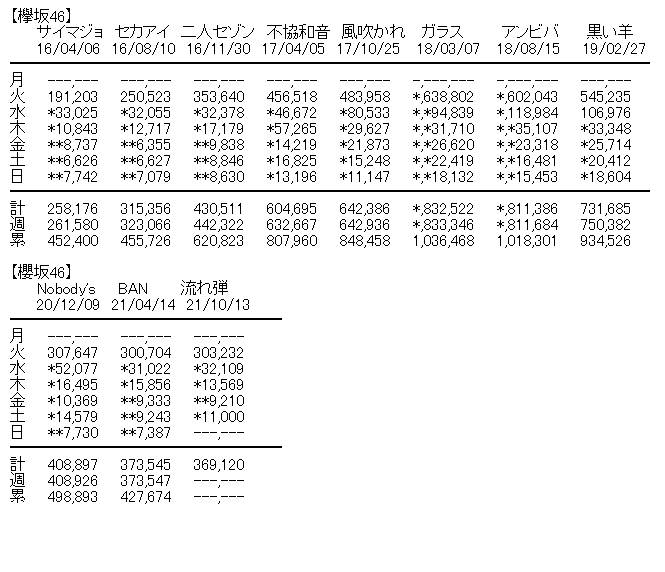 【櫻坂46】「流れ弾」5日目売上11,000枚