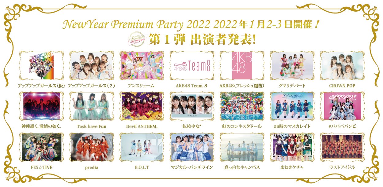 【朗報】『NewYear Premium Party 2022』にAKB48フレッシュ選抜とAKB48チーム8の出演が決定