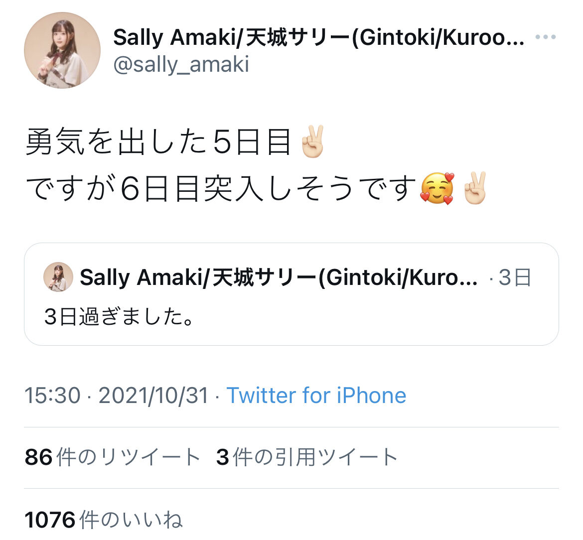 また高辻麗のTwitterならびにInstagram、SHOWROOMに関しては、本日11/1(月)23:59をもって閉鎖させていただきます。