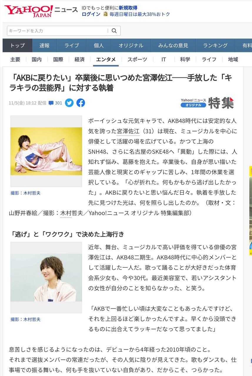 「AKBに戻りたい」卒業後に思いつめた宮澤佐江──手放した「キラキラの芸能界」に対する執着(Yahoo!ニュース オリジナル 特集)