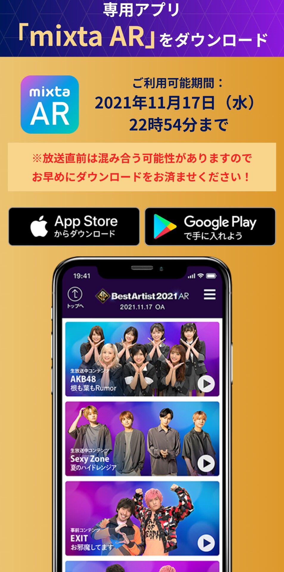 AKB48出演時間が19時台に決定
