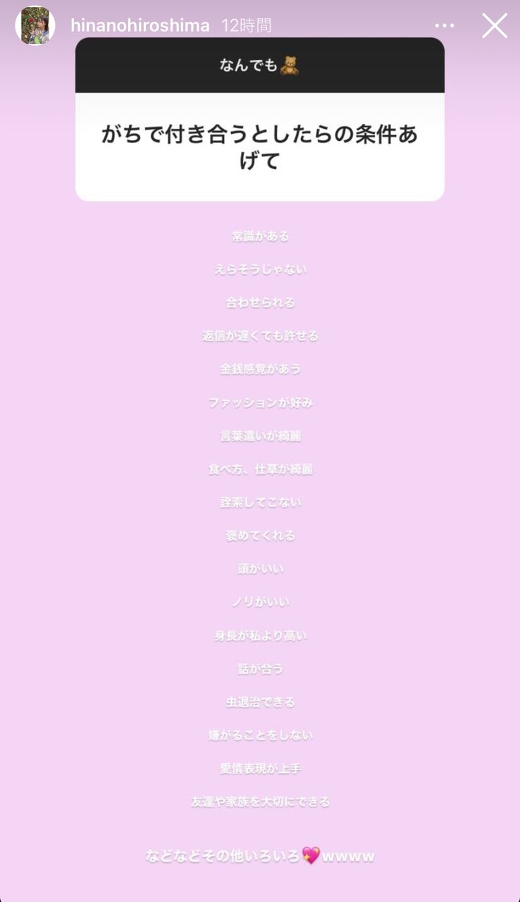 橋本陽菜さんが結婚相手に求める条件が難しい件