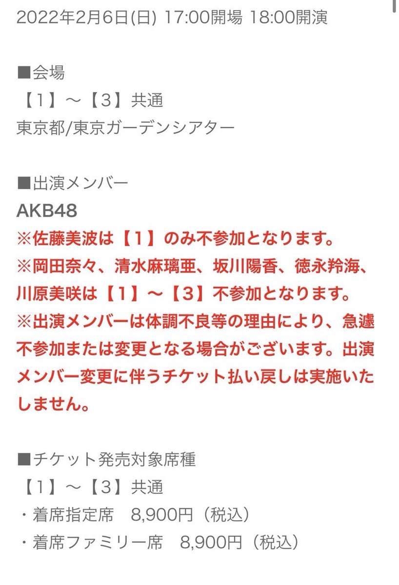 ※岡田奈々、清水麻璃亜、坂川陽香、徳永羚海、川原美咲は【1】~【3】不参加となります。