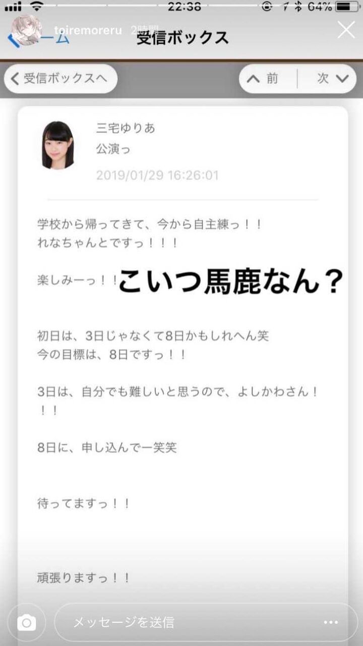 ①NMB本スレに突然「メンバーの裏垢晒していい?」という書き込みがされる