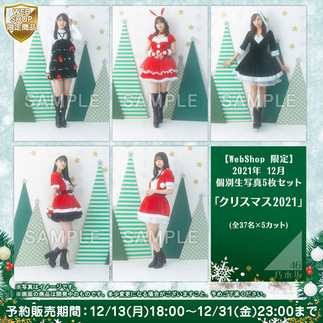 グループのグッズを販売する『乃木坂46 OFFICIAL WEB SHOP』は12月13日、「新商品のお知らせ」と共に個別生写真の予約販売をスタート。個別生写真は5枚で1セットの販売となり、新曲『最後のTight Hug』のMV衣装バージョンと「クリスマス2021」と称した〝サンタコスプレ〟の2種類が販売される。衣装バージョンは個性豊かなワンピースに身を包み、森の中にメンバーが佇む姿が。一方でサンタコスは、メンバーが赤と緑の〝ミニスカサンタ〟の衣装を着用し、生足をさらけ出したセクシーかつ、キュートな仕上がりになっている。