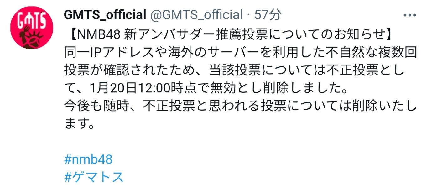 NMBオタにより繰り返される悪質不正投票にコラボ相手のGMTSが怒りのツイート・・・