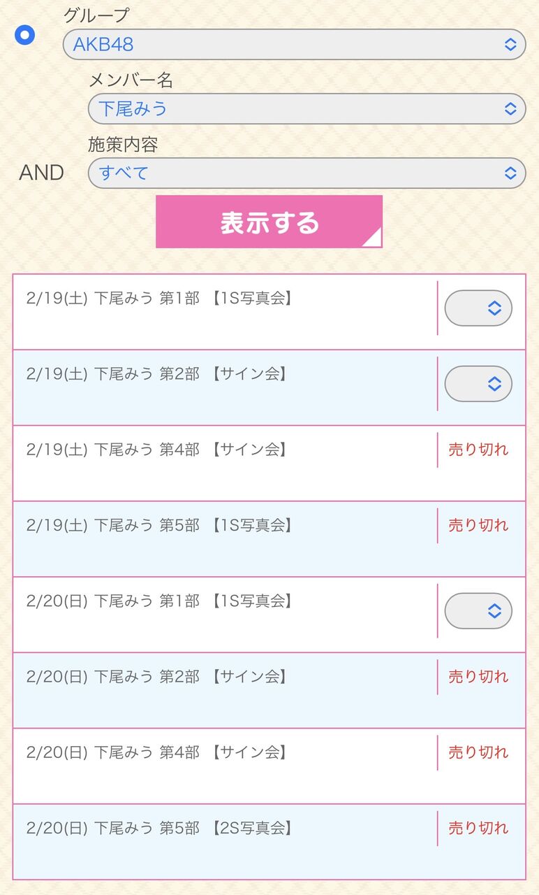 いつもの推し増し不可表