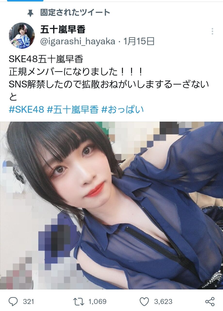 五十嵐早香、Twitter開始。いきなり #お○ぱい