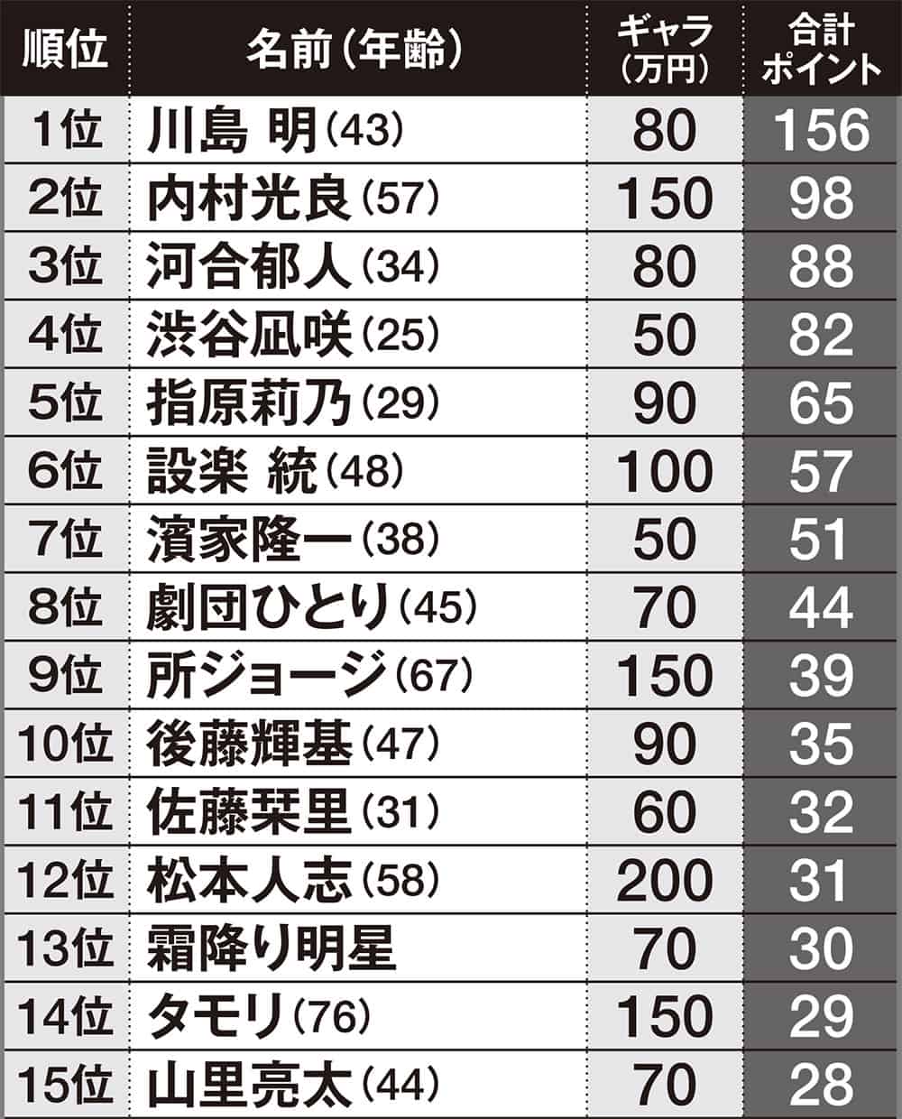 今回、大手広告代理店が民放キー局5社の関係者100人に実施した「あなたの番組で使いたい司会者」アンケートの結果を入手した。