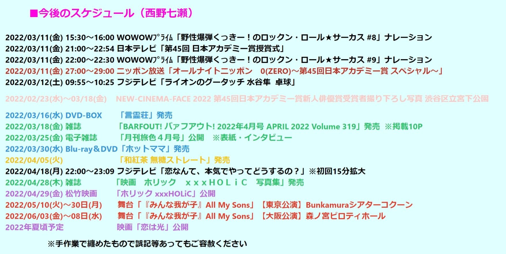 >そして、2022年も西野は続々と映画やドラマへの出演が決まっている。