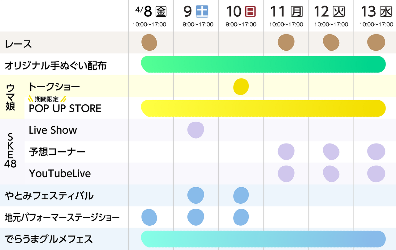 日時:4月11日(月)~13日(水) 10:45~第12レース終了頃